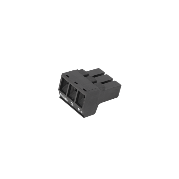 Detachable power plug with connections for Battery (B+), Ground (G), and Remote Turn-On (REM). Secures bare wire using screw and captive compression clamp. For use with select 2011 and newer compact PUNCH amplifiers.