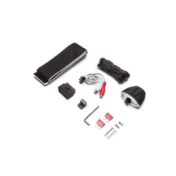 A1: The kit includes power connectors (depending on model), high‑level input harness, signal input harness, a “Punch Level Control”, 3.5 mm cable for the control, extra 10 A blade fuses, velcro adhesive strips, quick‑connect power block, and all necessary wiring/hardware for installation.