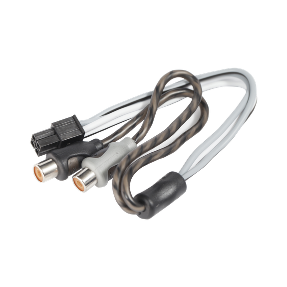 Rear channel low-level RCA to 4-pin input replacement harness. Can also be used as a high-level input harness by cutting off the RCA input jacks. For use with select compact PUNCH and POWER series amplifiers