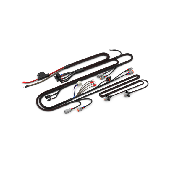 Replacement main power harness for RZR19PXP and RZR19RCPXP stage kits.  Provides power, ground, remote turn-on, signal routing, and speaker wires for STG4, STG5, and STG6 audio kits.