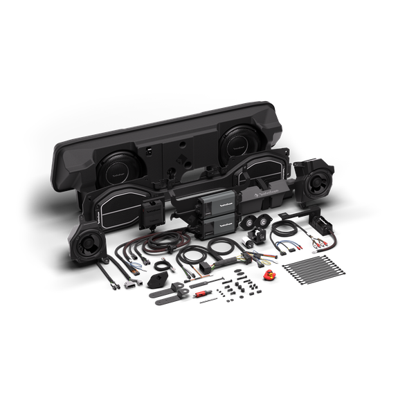 The 20GLADR‑STG5 is a full 1,800 W “Stage 5” all‑in‑one audio kit made by Rockford Fosgate specifically for select 2020–2023 Jeep Gladiator JT trucks. It bundles everything mid‑range speakers, tweeters, subwoofers, amplifiers, a DSP tuned for the Gladiator, wiring harnesses, and installation hardware into a plug‑and‑play package designed to replace the stock audio system with minimal hassle and maximal output.