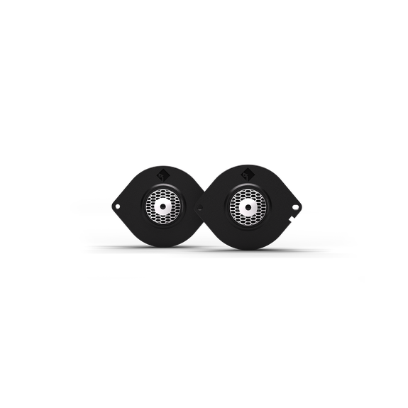 | M2-TS Front Tweeters | Marine-grade PEI rubber surround, OEM-style enclosures included, IPX6-rated front & grille, IPX5-rated frame |