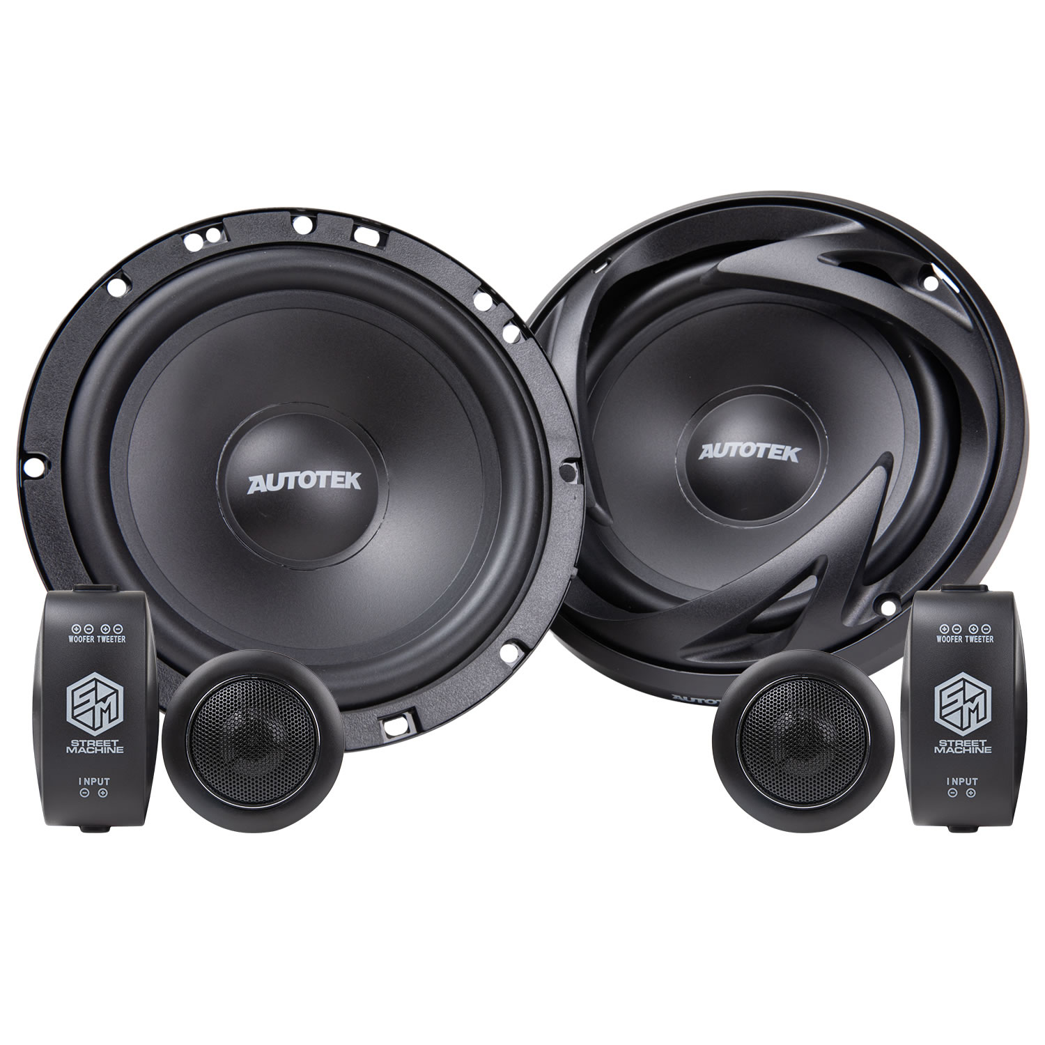 Autotek SM65C STREET MACHINE 6.5 inch car audio component speaker system with Neo Mylar Soft Dome Tweeters and Alpha-Cellulose Poly Cones.