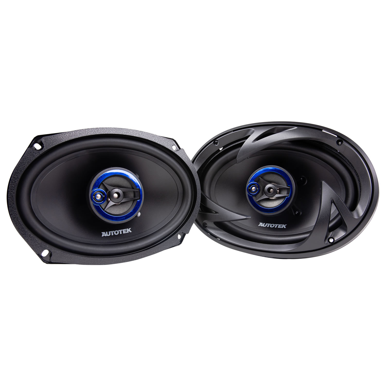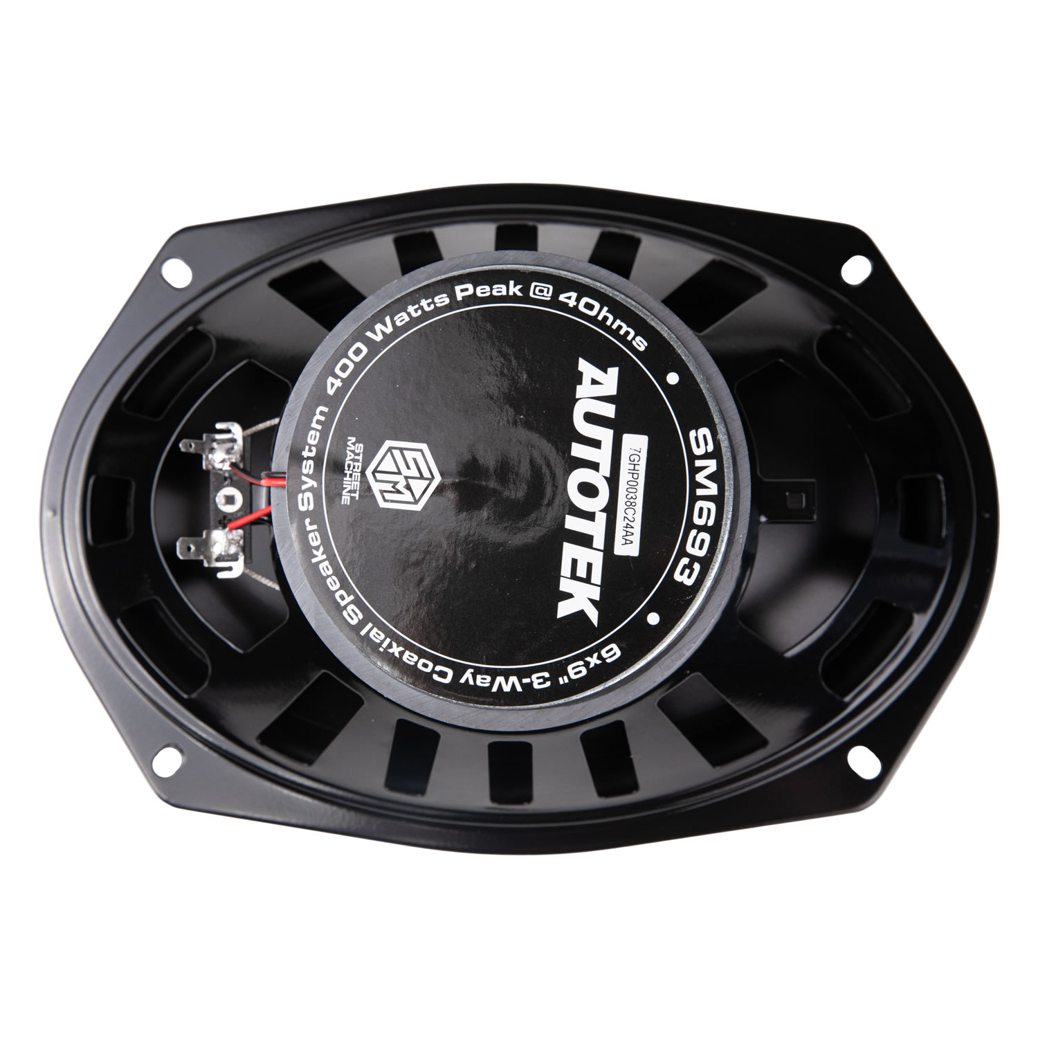 Autotek SM693 STREET MACHINE 6 x 9 inch 3-way car audio speakers with Neo Mylar Soft Dome Tweeters and Alpha-Cellulose Poly Cones.