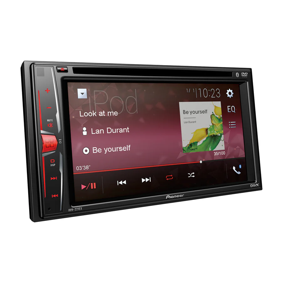 The Pioneer AVH‑221EX/B is a double‑DIN multimedia DVD receiver featuring a 6.2″ WVGA (800×480) clear‑resistive touchscreen, designed for both entertainment and connectivity. It offers built‑in Bluetooth® for hands‑free calls and music streaming, direct iPod/iPhone compatibility via USB, DVD/CD playback, and a rear‑view camera input for safe reversing. Audio‑upgrade friendly, it includes six‑channel 4‑volt pre‑outs for external amplifiers/subwoofers, a 13‑band graphic equaliser, high/low‑pass filters and time‑alignment for enhanced system tuning.