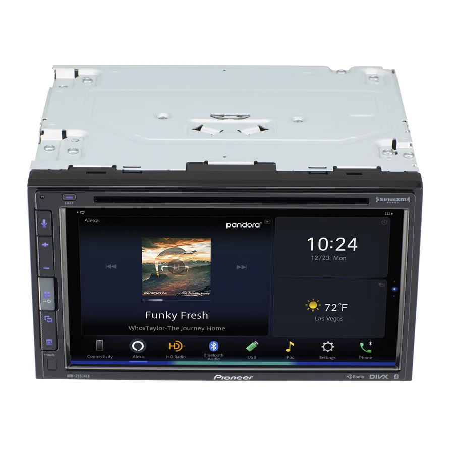 The Pioneer AVH‑2550NEX is a feature‑rich double‑DIN multimedia receiver with a 6.8″ WXGA (800×480) touchscreen display, designed for full smartphone integration and solid audio performance. It supports wired Apple CarPlay® and Android Auto™, built‑in Bluetooth® for hands‑free calls and music streaming, HD Radio™, SiriusXM‑ready architecture, and compatibility with the iDatalink® Maestro® interface for retaining factory vehicle features. Audio‑wise, it offers six‑channel 4‑volt preamp outputs, built‑in DSP with 13‑band graphic EQ, time alignment, high‑/low‑pass filters, and playback of high‑resolution FLAC audio formats.