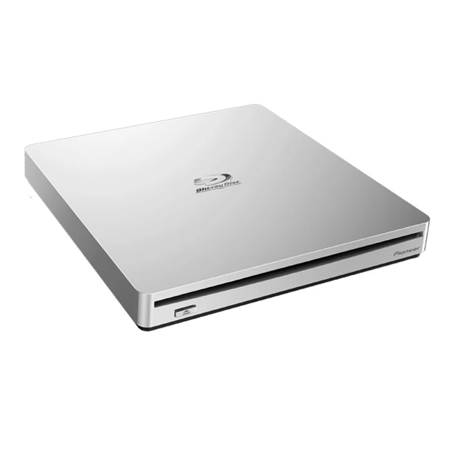 The Pioneer BDR-XS07S is a portable, slim slot-loading external Blu-ray/DVD/CD writer/burner that connects via USB 3.1 Gen 1. It supports a wide range of formats including BDXL (triple/quad layer), M-DISC archival media, conventional Blu-ray (BD-R/RE), DVDs and CDs. It features a sleek design (approx. 135 × 135 × 18 mm) and is bus-powered via USB (no separate AC adapter required under typical use).
