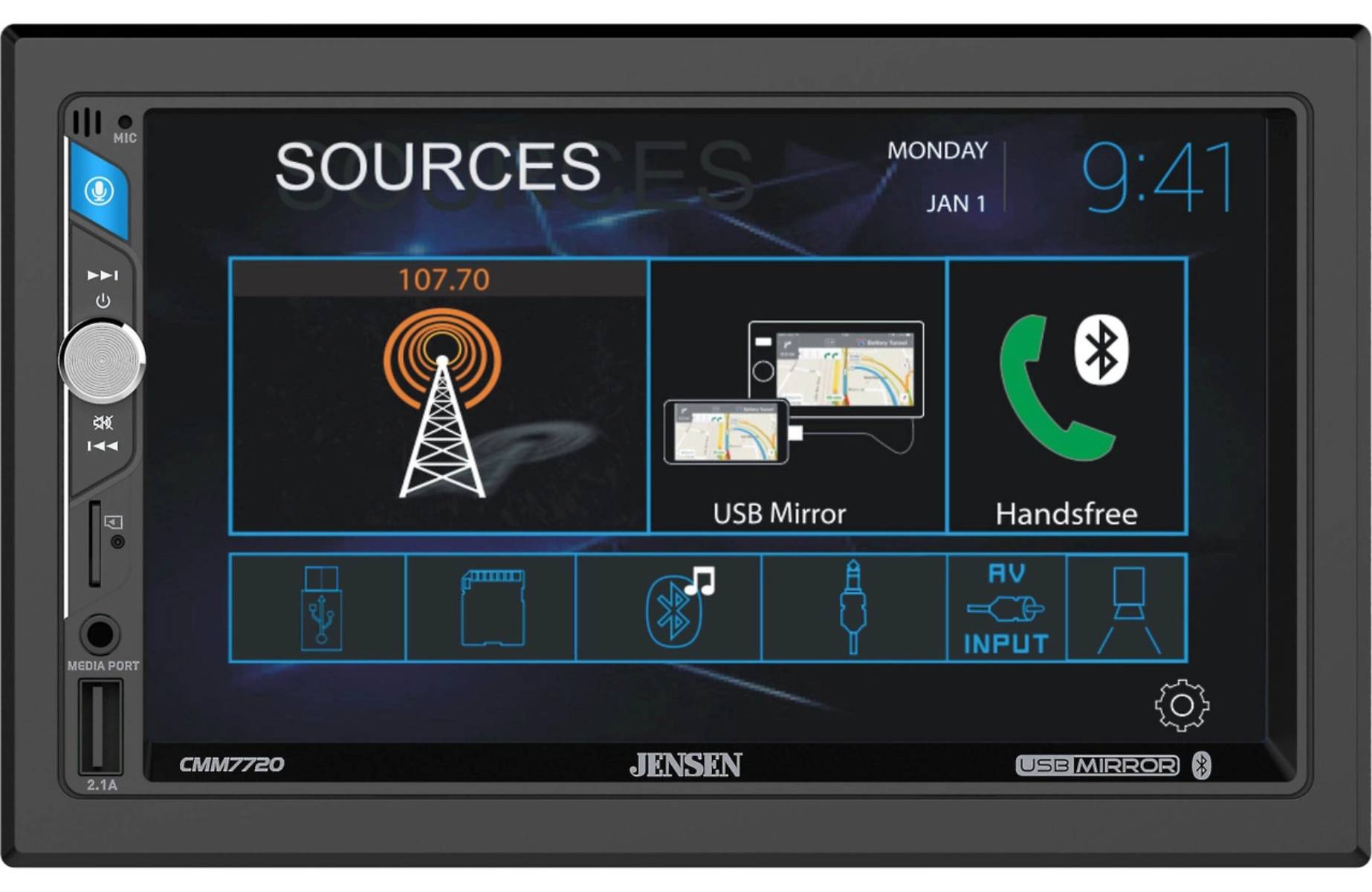 7″ Capacitive touchscreen LCD (1024×600), Built-in Bluetooth technology with hands-free calling, music streaming with ID3 tags and phonebook support, internal mic, AM/FM tuner with 30 station presets (18FM/12AM), Push-to-talk button to access smartphone voice assistant, J-Link Smart Remote app via Bluetooth, Front panel USB input with 2.1A charging, Backup camera RCA input, Front camera RCA input, Front panel 3.5mm Aux input and micro SD card input, Rear A/V input / video output RCA, 3 Pair of RCA 4V preamp output (F/R/S), File formats: MP4, MP3, FLAC, 7 Preset EQ Curves, 200 Watts max power (50W x 4), Steering Wheel Control (SWC) Input