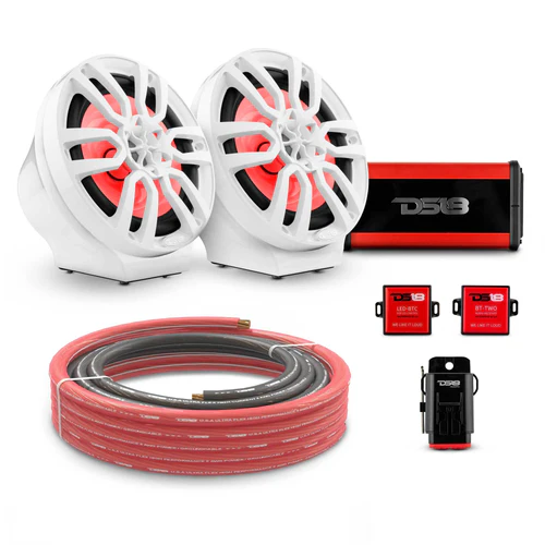 For a seamless and reliable power setup, this package includes a Marine Grade Fuse Holder for added protection and the PW-OFC8GA-5BK/20RD Ultra Flex OFC Ground Power Cable—5 feet of black and 20 feet of red. Designed for durability and efficiency, these components ensure optimal power delivery to keep your audio system performing at its best.