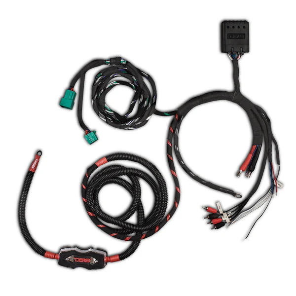 The DS18 JL24-SBAHKIT is a complete soundbar and amplifier wiring harness kit designed for 2024+ Jeep Wrangler JL/JLU and Jeep Gladiator JT models. This kit simplifies the installation of an aftermarket amplifier and DS18 soundbar system by providing a fully pre-wired, plug-and-play solution that connects directly to the factory radio.