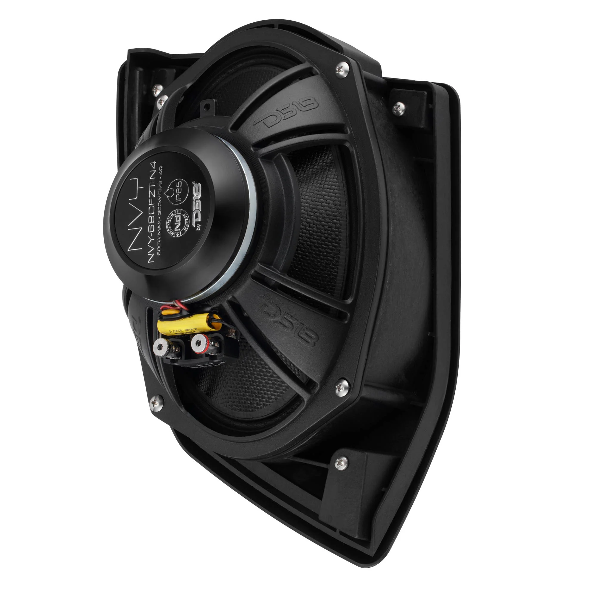 Each saddlebag is preloaded with a NVY-69CFZT-N4: these 2-way coaxials hit across the full range of frequencies and perform in all conditions.