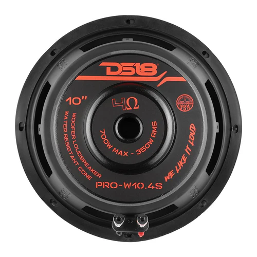 The DS18 PRO-W10.4S boasts an impressive power handling capacity of 350 watts RMS and a peak power of 700 watts, ensuring that every beat is delivered with precision and impact. Equipped with a 2.5″ voice coil, this woofer is designed to withstand the demands of high-performance audio systems. The voice coil’s former material and winding material ensure reliable operation and optimal performance. The water-resistant paper cone is not only durable but also guarantees exceptional sound reproduction. With a sensitivity of 88dB and a frequency response ranging from 40Hz to 4.5KHz, every note and every beat is delivered with clarity and depth.