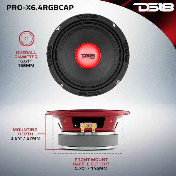 The PRO-X6.4RGBCAP’s strong ferrite magnet and high wattage voice coil ensure optimal performance and durability, allowing you to push the limits without compromising on quality. The result? Exceptional sound reproduction and accuracy that will bring your music to life.