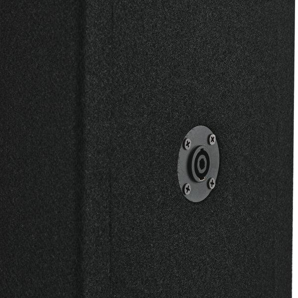 The DS18 VOC8PRO is a dual-8″ + dual-4″ ported Voceteo speaker enclosure from DS18 designed to house a complete high-output midrange and tweeter setup in a compact form factor. This empty ported enclosure accommodates two 8″ midrange speakers and two 4″ tweeters, making it ideal for vocal-forward sound systems where clear mids and highs are essential. It features a built-in Speakon terminal and comes with a 12 ft OFC 4-conductor Speakon cable for easy plug-and-play connection to your amplifier. Constructed from ½″ MDF with a black carpet finish, the VOC8PRO is lightweight yet rugged for both mobile and static sound installations. The midrange drivers are wired in parallel and the tweeters in series to optimize power handling and response, while the ported design enhances projection and overall acoustic performance.