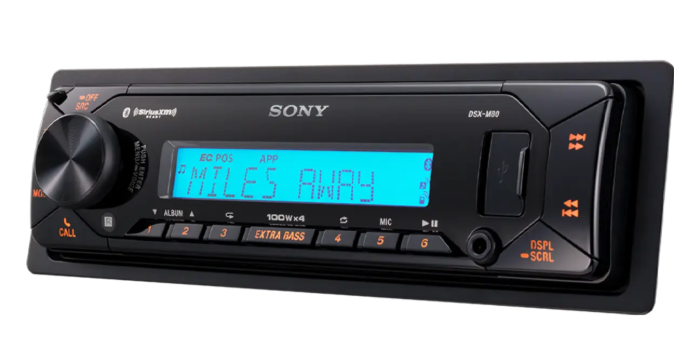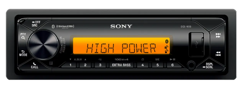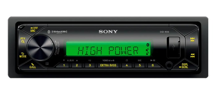 The Sony DSX-M80 is a high-power marine digital media receiver designed to deliver exceptional audio performance in marine environments. It features a built-in Class D amplifier providing 4x45W RMS output, ensuring robust sound even in challenging conditions. With dual Bluetooth® connectivity, you can connect two smartphones simultaneously—one for music playback and the other exclusively for hands-free calling. The receiver also includes a 10-band graphic equalizer, EXTRA BASS™ for enhanced low-end, and a subwoofer direct connection with a 2-ohm option for powerful bass performance. Its UV-resistant finish and anti-corrosive coating make it durable and suitable for marine applications.