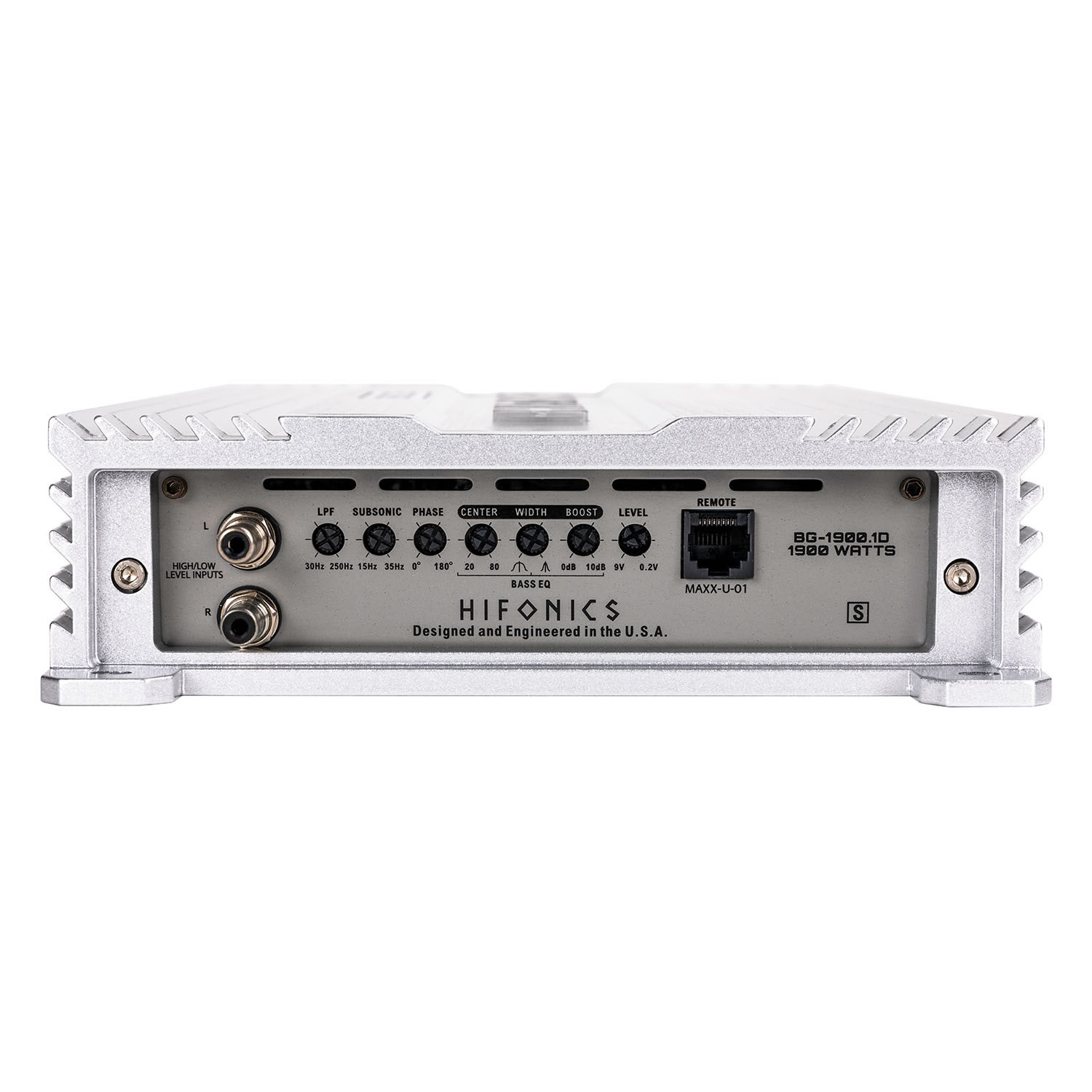 The Hifonics BG‑1900.1D is a Class D monoblock amplifier from the Brutus Gamma (BG) Series, engineered to deliver strong and efficient bass power for subwoofer systems. With high current capability, built‑in tuning controls, and reliable protection circuitry, it’s suitable for both daily listening audio builds and moderate SPL systems.