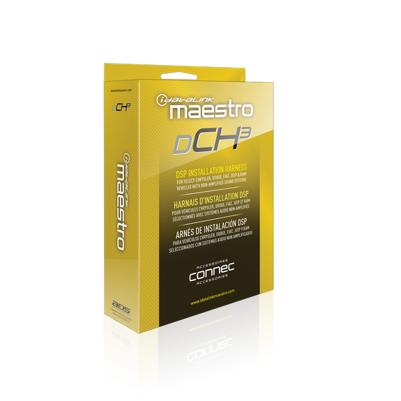 The HRN‑DSP‑CH3 is a T-harness designed by iDatalink Maestro specifically for installing the Rockford Fosgate DSR1 digital signal processor (DSP) into select Chrysler, Dodge, Jeep, Fiat, and Ram vehicles (model years 2013 and up) that do not have a factory amplifier (non-amplified systems).
