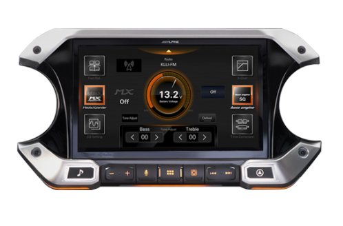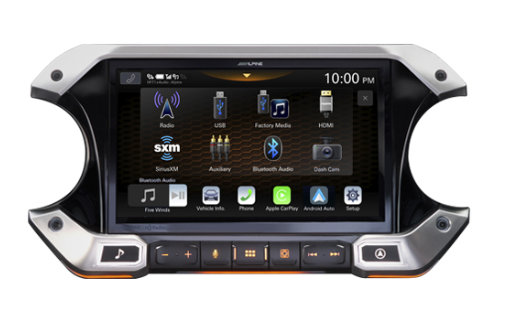 The display is housed in a Jeep® -specific trim bezel that emulates the look and feel of the Jeep® dash. A Jeep® -specific harness is included with the receiver to take out the guesswork during installation and make it a true plug-and-play solution. The weather-resistant display features a Jeep® -specific opening screen and LED color scheme for a consistent design with factory Jeep® settings.