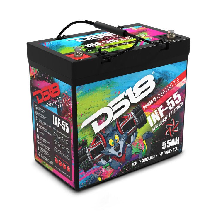 DS18’s INF-55AH is a high-performance AGM power cell designed to push car audio systems to the limit. Built with Absorbed Glass Mat (AGM) technology, this battery ensures consistent voltage delivery, reliable reserve power, and high-amperage bursts.