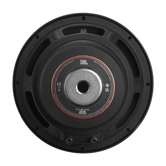 The JBL Club 102 is a 10-inch high-performance car subwoofer designed to deliver deep, powerful bass while remaining flexible for different amplifier setups. It features Selectable Smart Impedance (SSI™) technology, allowing you to switch between 2 Ω or 4 Ω impedance to match your amplifier configuration. The subwoofer uses a polypropylene cone, high-roll rubber surround, and a double-stack magnet design to handle high power while maintaining clean and controlled low-frequency output. With its vented basket for cooling and durable construction, the Club 102 is built for reliable performance in both sealed and ported enclosures, making it a strong bass upgrade for car audio systems.