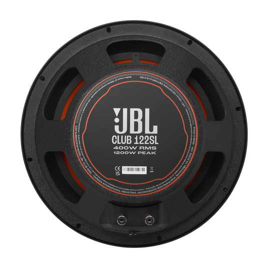 The JBL Club 122SL is a 12-inch shallow-mount car subwoofer engineered to deliver powerful bass in vehicles where installation depth is limited. It features a rigid aluminum woofer cone that maintains its shape during high excursion for clean, distortion-free bass. JBL’s SSI™ (Selectable Smart Impedance) technology allows the subwoofer to switch between 2 Ω or 4 Ω impedance, making it easy to match with different amplifiers. The high-roll rubber surround enables greater cone movement for deeper bass, while the vented basket design keeps the voice coil cool during high-power operation. With strong power handling and a compact mounting depth, the Club 122SL is ideal for tight trunk installations and shallow subwoofer enclosures.