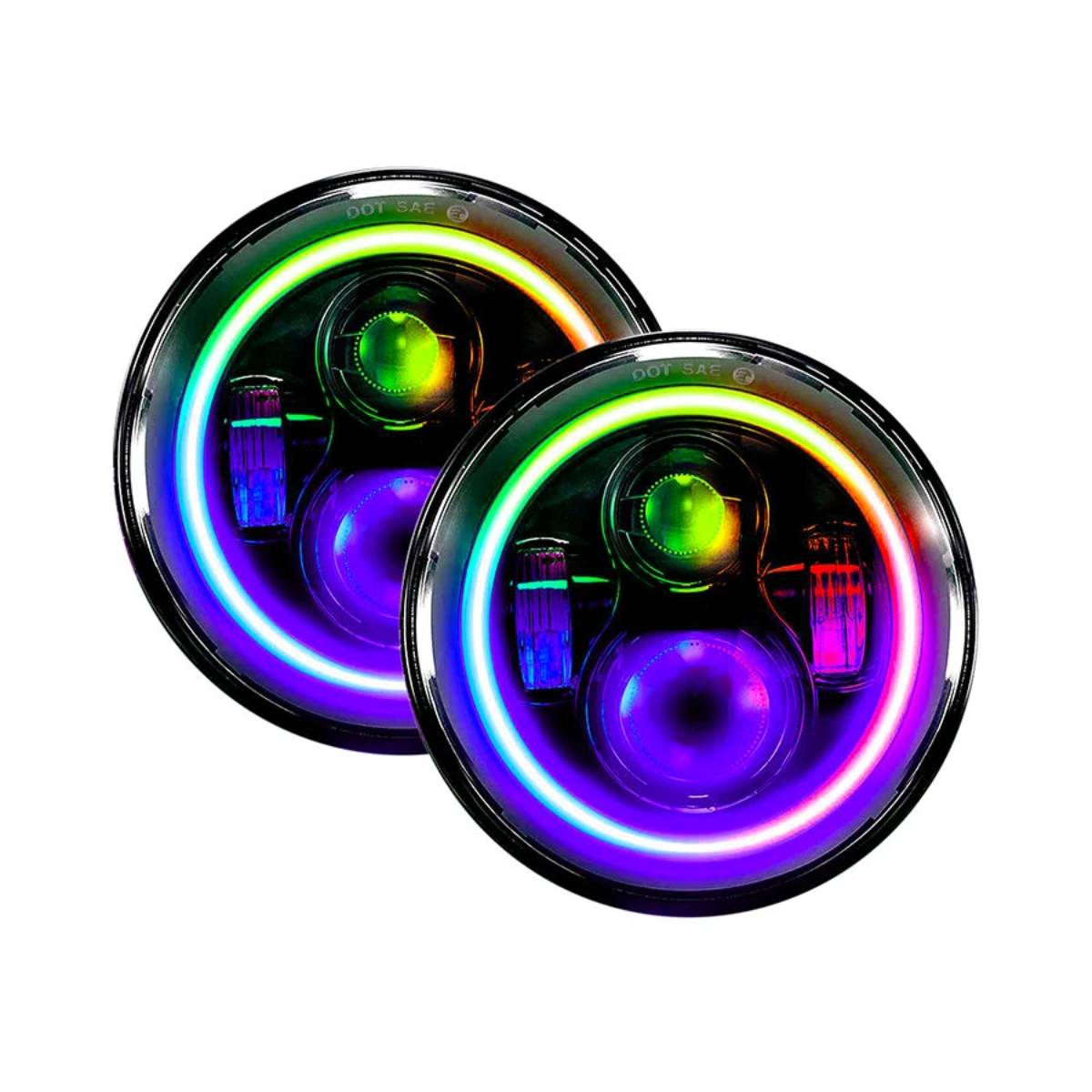 Aukmak started in 2014, with the mission of making high quality, great value aftermarket performance parts and accessories. RGB 7inch LED Headlight RGB 7 inch LED Headlights kit – A great looking lights. Upgraded new version, 6pcs LED projector, not old version with only 4pcs. Top high quality, not low-cost ones ( look closer when you are doing the search) Super bright on both high low beam & RGB DRL halos. Look great, are fun, and well worth the cost. jeep wrangler headlight Much more stable, Better connection! Fixed all previous issues/bugs. Our controller can remember your last setting, so you no need to connect the APP every time. Take literally seconds to get the halos light set with the app. Change the many colors right from an app is so easy. RGB LED halos controlled by Bluetooth through APP, compatible with iOS and Android. FULL FUNCTIONS: Music mode: Yes Scene modes: Yes Timing function: Yes Manual control: Yes Blinking function: Yes Flashing function: Yes Brightness dimmable: Yes Unlimited colors options: Yes
