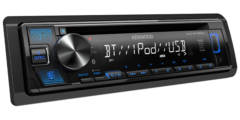 The Kenwood KDC-BT282U is a single DIN CD receiver with built-in Bluetooth designed for reliable car audio performance, smartphone connectivity, and clean sound tuning. It features a 204-segment LCD display with white text and blue illumination for clear visibility and a modern look.
