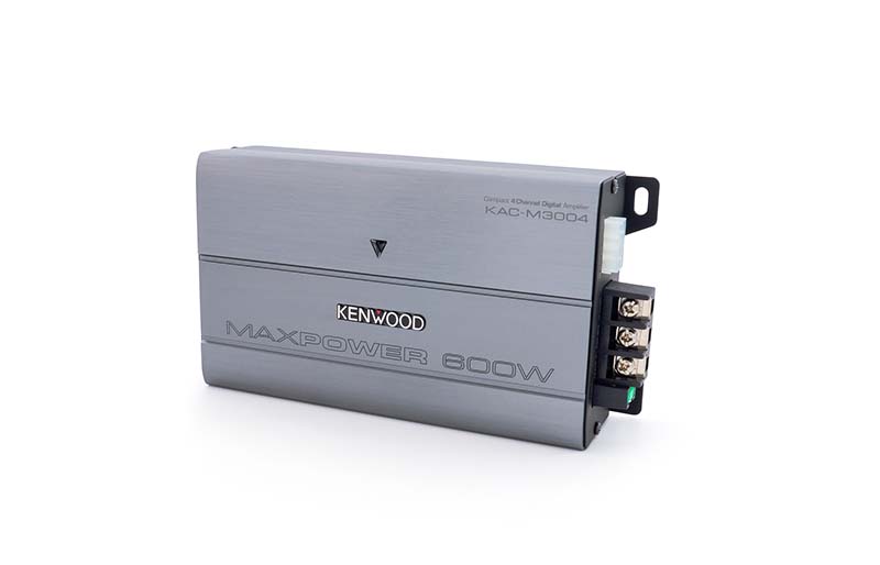 The Kenwood KAC-M3004 is a compact 4-channel Class D amplifier designed for cars, motorcycles, and marine environments. It delivers clean and efficient power in a small size, making it perfect for tight installations while providing reliable performance and durability in harsh conditions.