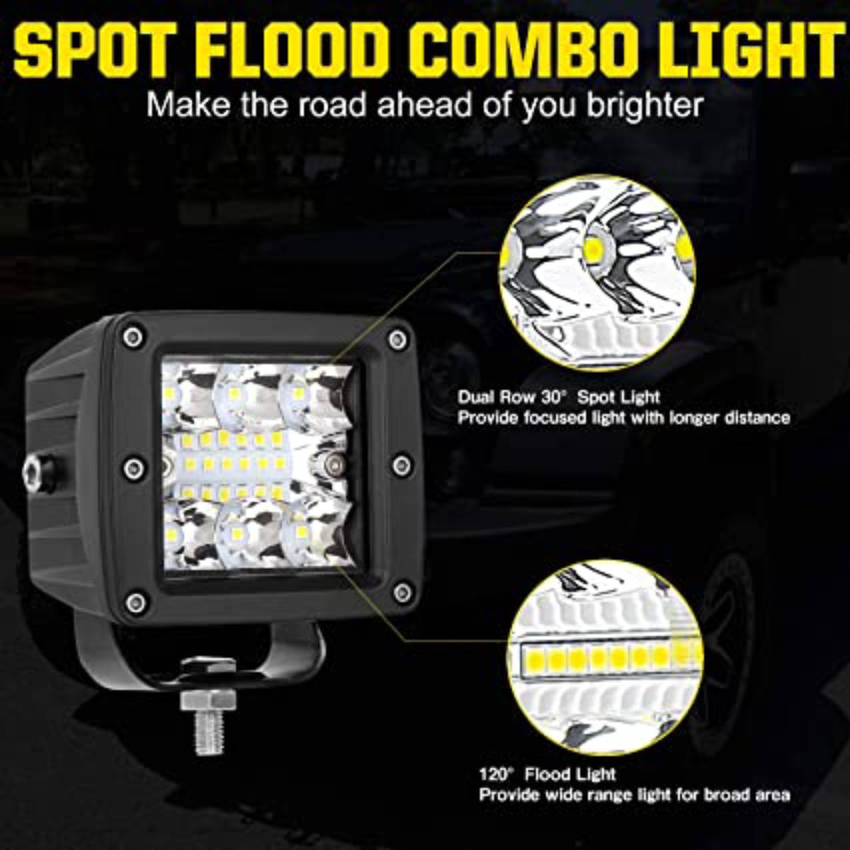 The 4” LED pods are engineered and tested in the most extreme conditions. Each light is designed with a durable aluminum housings covered with a UV polyester powder coat finish, and a virtually indestructible polycarbonate lens to ensure the ultimate protection.