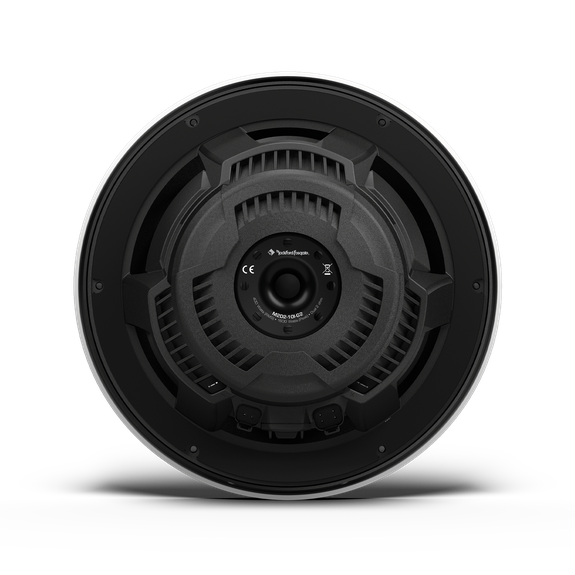 The M2D4‑10I‑G2 is a 10″ dual‑voice‑coil marine‑grade subwoofer from Rockford Fosgate’s M2 Series — optimized for infinite‑baffle / free‑air installations (i.e. you don’t need a sealed box). It’s built with an injection‑molded mineral‑filled polypropylene cone, UV‑stable frame, waterproof & corrosion‑resistant components, and even integrated RGB LED lighting (via the brand’s Color Optix system) for marine/powersports or outdoor setups.