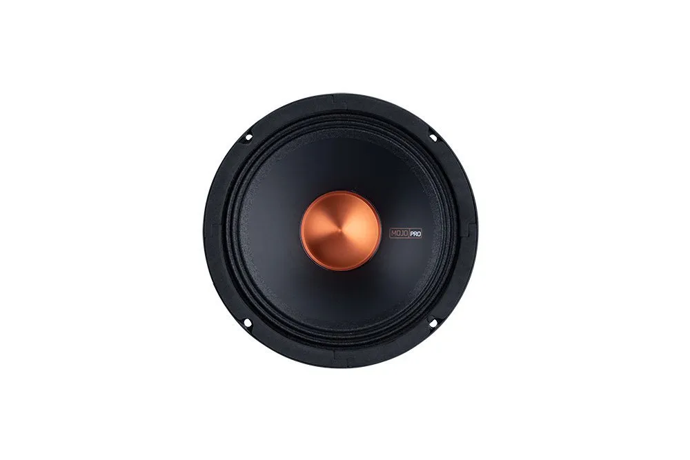 The MJP8 is an 8″ Mojo Pro midrange / component driver designed for high efficiency and rugged use — especially in powersports or outdoor installs. It comes with a water-resistant design, a neodymium magnet to reduce size and weight, and a cast aluminum basket for strength. Its 200 W RMS / 400 W peak power handling, plus extremely high sensitivity, makes it a very capable mid‑speaker or component in custom or exposed environments.