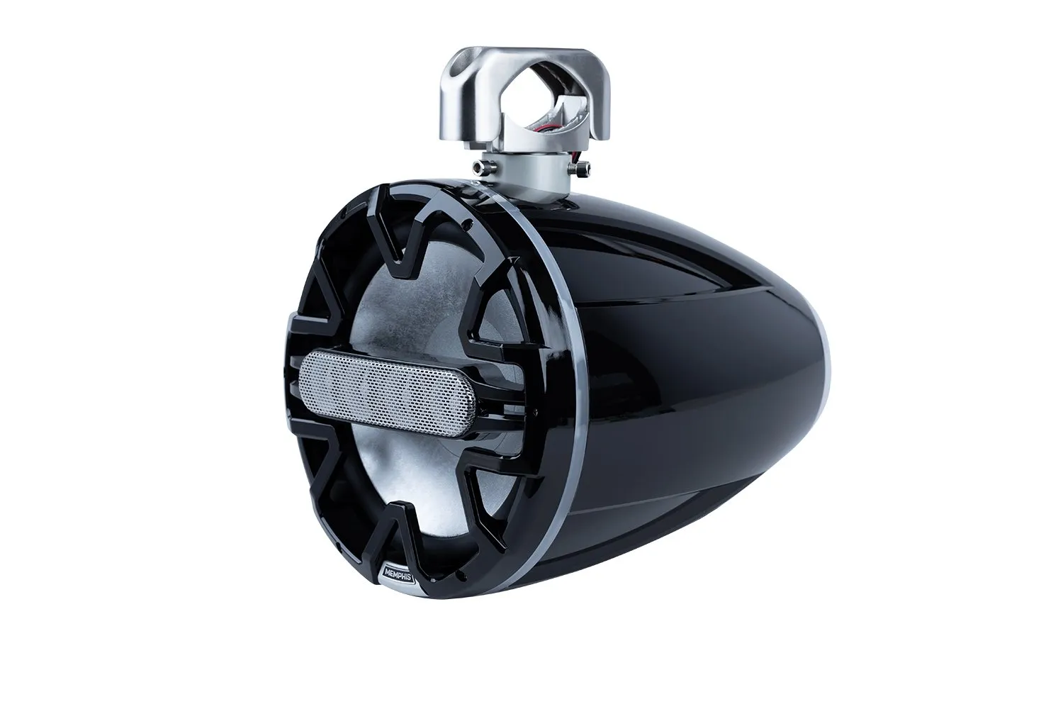 The MM105TB is a 10″ high-performance marine tower speaker engineered for boats, wake towers, side-by-sides, and other powersports vehicles. Built with Memphis ATAC™ (Advanced Tower Array Construction), it uses a curved 4-tweeter line array that delivers long-distance, wide-angle sound projection — perfect for open-air environments. Its fully sealed design prevents water, dust, and debris from entering the enclosure, making it ideal for harsh outdoor use. The heavy-duty ASA plastic housing, stainless-steel hardware, and IP66 rating ensure long-term durability. Dual-sided RGB LED lighting adds a premium illuminated look from both front and back, enhancing the visual appeal of any vehicle or boat.