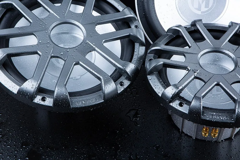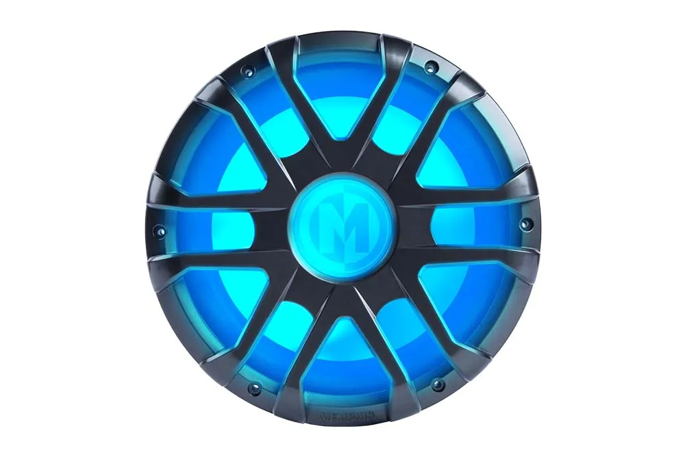 The MM1224 is a 12″ marine-grade subwoofer from Memphis’s MXA (marine) series. It features Selectable Impedance Technology, allowing you to switch between 2 Ω and 4 Ω, making your setup more flexible. The subwoofer has a translucent plastic cone backlit with RGB LED lighting, giving a striking visual effect in low light. Its high‑temperature ABS basket is designed for durability and resistance against moisture and corrosion — ideal for marine and powersports use.