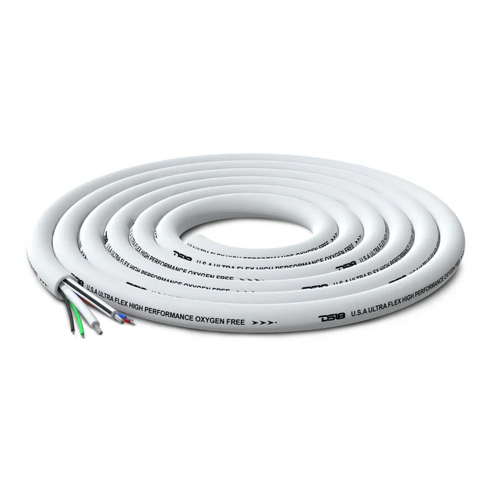 With a generous length of 100 feet, this marine RGB lights cable provides ample coverage for your installation needs. Its UV-protected white outer shield adds durability while maintaining flexibility. Trust DS18 to deliver exceptional quality and performance for your sound system customization.