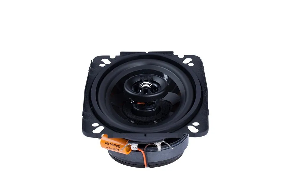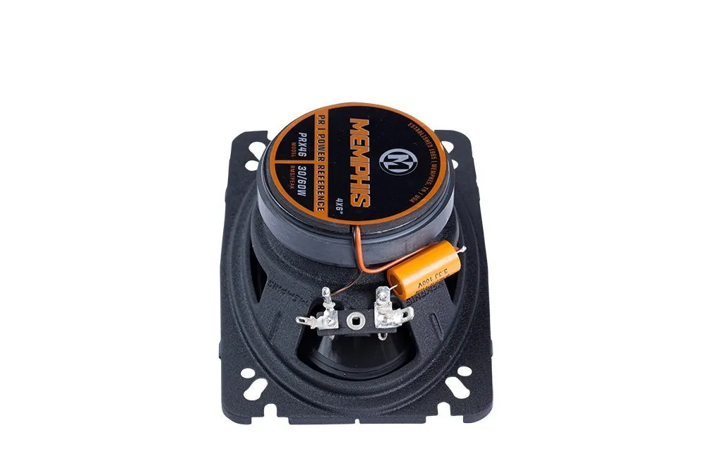 The PRX46 is a 4″×6″ 2‑way coaxial speaker from Memphis Audio’s Power Reference (PRX) line. It’s designed to upgrade factory audio systems with balanced sound and a compact footprint. The woofer uses a graphite-reinforced polypropylene cone for strength and lightness, while the PEI dome tweeter is pivot‑mounted to allow for better imaging. With a polyurethane surround and integrated 6 dB crossover, it delivers warm, clear sound suited for OEM-style installations.