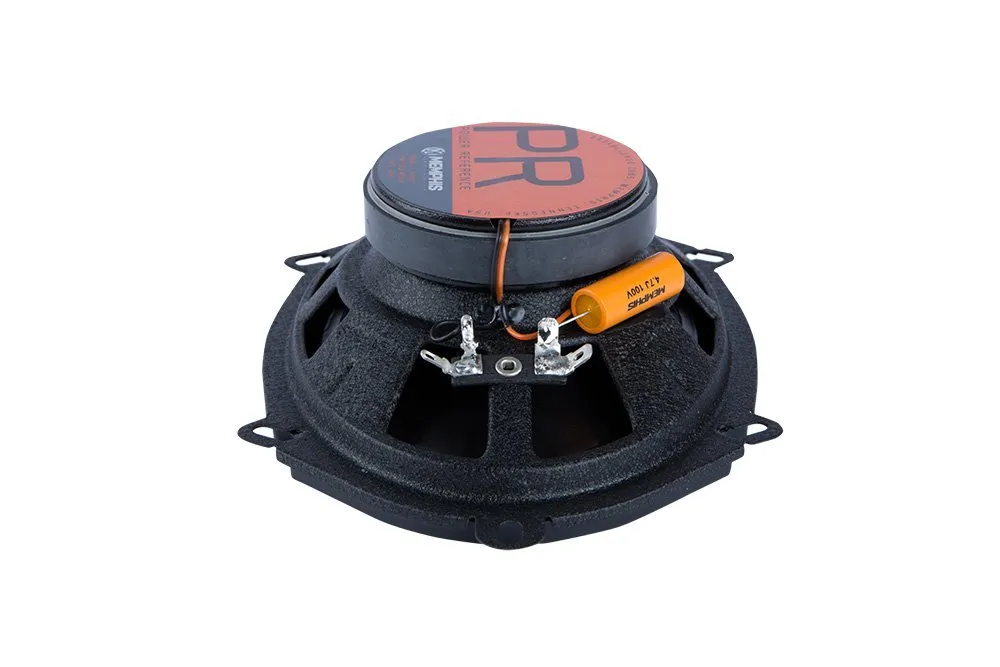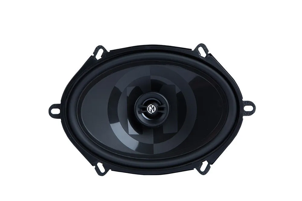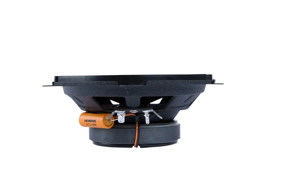 The PRXS57 is a 5″ × 7″ shallow-mount, 2-way coaxial speaker from Memphis’s Power Reference (PRX) line, designed specifically to fit in tight factory locations (like Chrysler, Toyota, and Dodge) where depth is limited. It features a graphite-reinforced polypropylene cone for warm, accurate mid-bass, a butyl rubber surround for durability, and a 1″ PEI (polyetherimide) dome multi-direction pivot tweeter to improve high-frequency imaging. The speaker handles 40 W RMS and 80 W peak power per unit, has a sensitivity of 88 dB, and operates at 2 Ω impedance. Its top-mount depth is just 2.05″, making it ideal for shallow-mount applications.