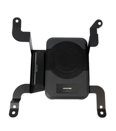 The subwoofer is just 3” deep, so it and the amplifier are hidden and installed under the front passenger’s seat. Aside from maintaining storage space, placing the subwoofer close to the front of the vehicle allows for a proper sound stage in front of you for the best bass and imaging experience. Tundra-specific brackets and wiring harnesses are included.