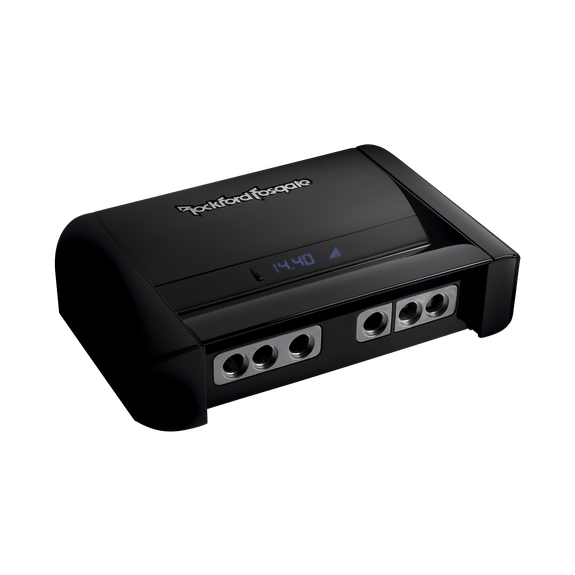 The RFC10HB is a 10‑Farad Hybrid Digital Capacitor made by Rockford Fosgate. It is designed to improve amplifier performance by providing temporary power storage to help manage voltage dips during heavy bass or high-power demands. It uses a combination of carbon capacitor and electrolytic capacitor technologies, which helps in maintaining a low ESR (Equivalent Series Resistance) for cleaner performance. The capacitor is platinum‑plated, includes multiple heavy-gauge input/output terminals (both power and ground), and comes with a built‑in voltage/amp meter.