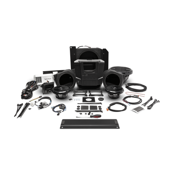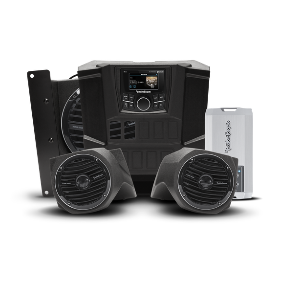 The Rockford Fosgate RNGR-STAGE3 Stage 3 Audio Kit is designed to provide high-performance sound for Polaris Ranger vehicles. Featuring upgraded speakers, a subwoofer, and a PMX digital media receiver, this Stage 3 kit delivers deep bass, clear mids, and crisp highs. Its plug-and-play design allows easy installation, while rugged Element Ready™ components ensure durability in tough off-road conditions, offering a complete, premium audio experience.