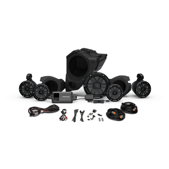 The Rockford Fosgate RZR14RC-STG4 Stage 4 Audio Kit is designed to deliver high-performance sound for Polaris RZR vehicles. Featuring upgraded speakers, a subwoofer, and a PMX digital media receiver, this Stage 4 kit provides deep bass, clear mids, and crisp highs. Its plug-and-play design ensures easy installation, while rugged Element Ready™ components withstand harsh off-road conditions, offering a complete and immersive audio experience for RZR enthusiasts.