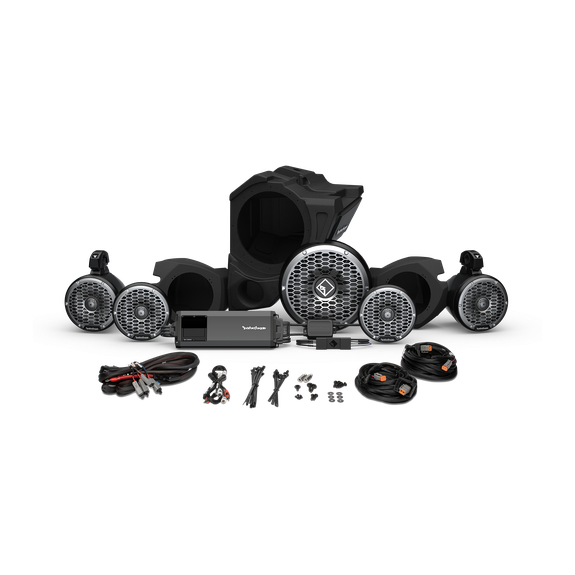 The Rockford Fosgate RZR14RC-STG5 Stage 5 Audio Kit is engineered to deliver premium high-performance sound for Polaris RZR vehicles. Featuring upgraded speakers, a subwoofer, and a PMX digital media receiver, this Stage 5 kit provides deep bass, clear mids, and crisp highs. Its plug-and-play design ensures easy installation, while rugged Element Ready™ components offer durability in extreme off-road conditions, giving a complete, immersive audio experience for RZR enthusiasts.