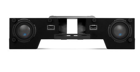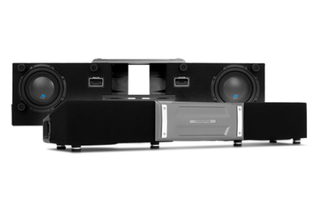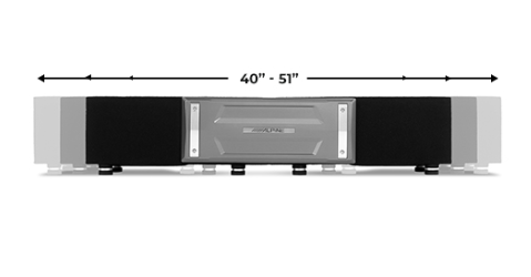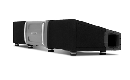 The enclosures were intentionally crafted to fit most full-size trucks. Two 8” subwoofers are preloaded into a compact enclosure for under-the-seat installation and linked with a ProLink™ bracket that can adjust from 51”–40”. Centered on the enclosures is an integrated amplifier mount tray that’s optimized for Alpine’s S-A60M Mono Power Amplifier (sold separately). Rubber “feet” are adjustable in height to accommodate uneven truck floors.