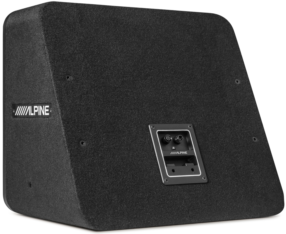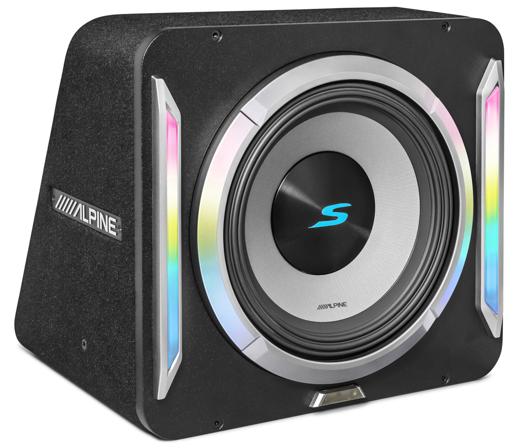 The Alpine S2‑SB12 is a 12″ PrismaLink® S‑Series pre‑loaded sealed subwoofer enclosure featuring built‑in RGBW lighting and high‑performance bass output. It houses the S2‑W12D4 12″ subwoofer (dual 4‑ohm voice coils wired to 2 Ω) and delivers approx. 600 W RMS / 1800 W peak power handling. The enclosure is designed in a compact “wedge” style to fit more vehicles, and offers aesthetic appeal through integrated RGB lighting with 12 static colours and 4 dynamic modes controllable via included remote or compatible Alpine receivers.