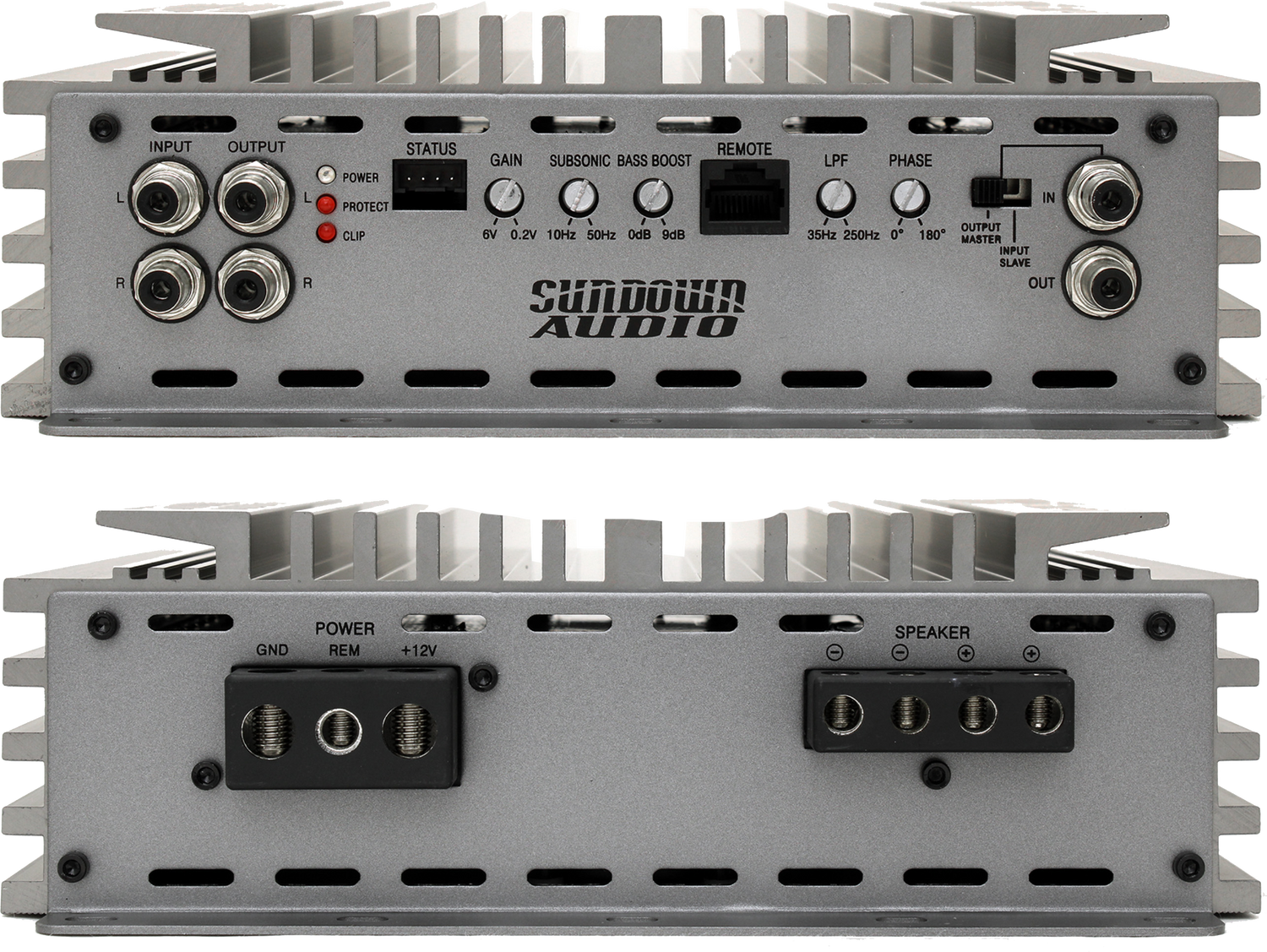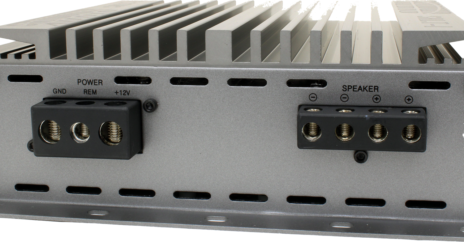 Feel the power of the Sundown SALT-1! This strappable amp delivers a massive 2,000 watts at 2 ohms when attached to another SALT-1, or pump out 1,000 watts at 1 ohm on its own. The amp features both a 24dB variable subsonic and low pass filter, along with a bass boost at 45Hz, letting you dial in your personal, perfect sound. The phase shift control makes it easy to precisely adjust the output. With onboard indicators for power, clipping, and protection you’ll have full control over your setup. Use the included wired remote control to see voltage, temperature, and clipping at a glance.
