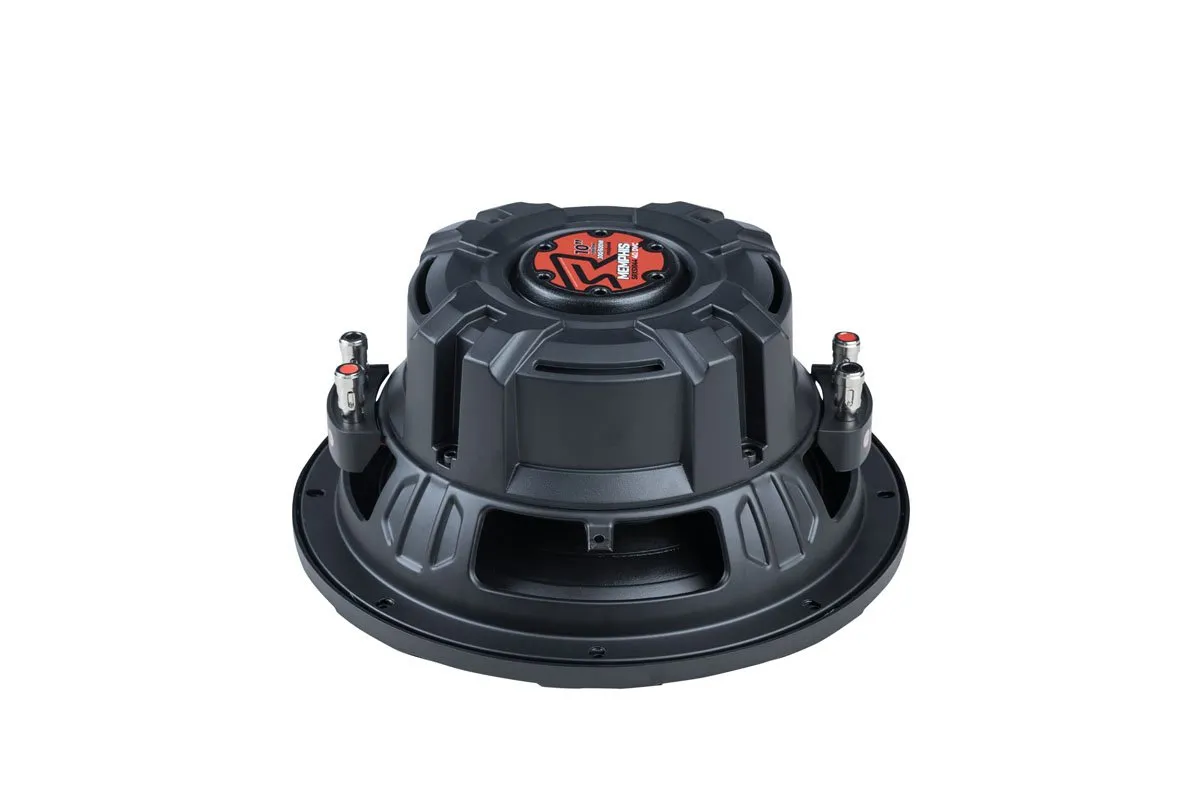 The SRX1044V is a 10″ subwoofer from Memphis Audio’s Street Reference (“SRX”) line. It comes with dual 4‑Ω voice coils, giving you flexibility to wire it for 2 Ω or 8 Ω depending on your amplifier setup. The driver features a polypropylene cone with a stitched rubber surround and a progressive poly‑cotton spider for strong low-end control. It’s optimized for both sealed and ported enclosures, and includes DVVC (Direct Vent Voice Coil Cooling) for better heat management when pushed hard. Rated at 300 W RMS and 600 W peak, it’s a solid, budget‑friendly sub.