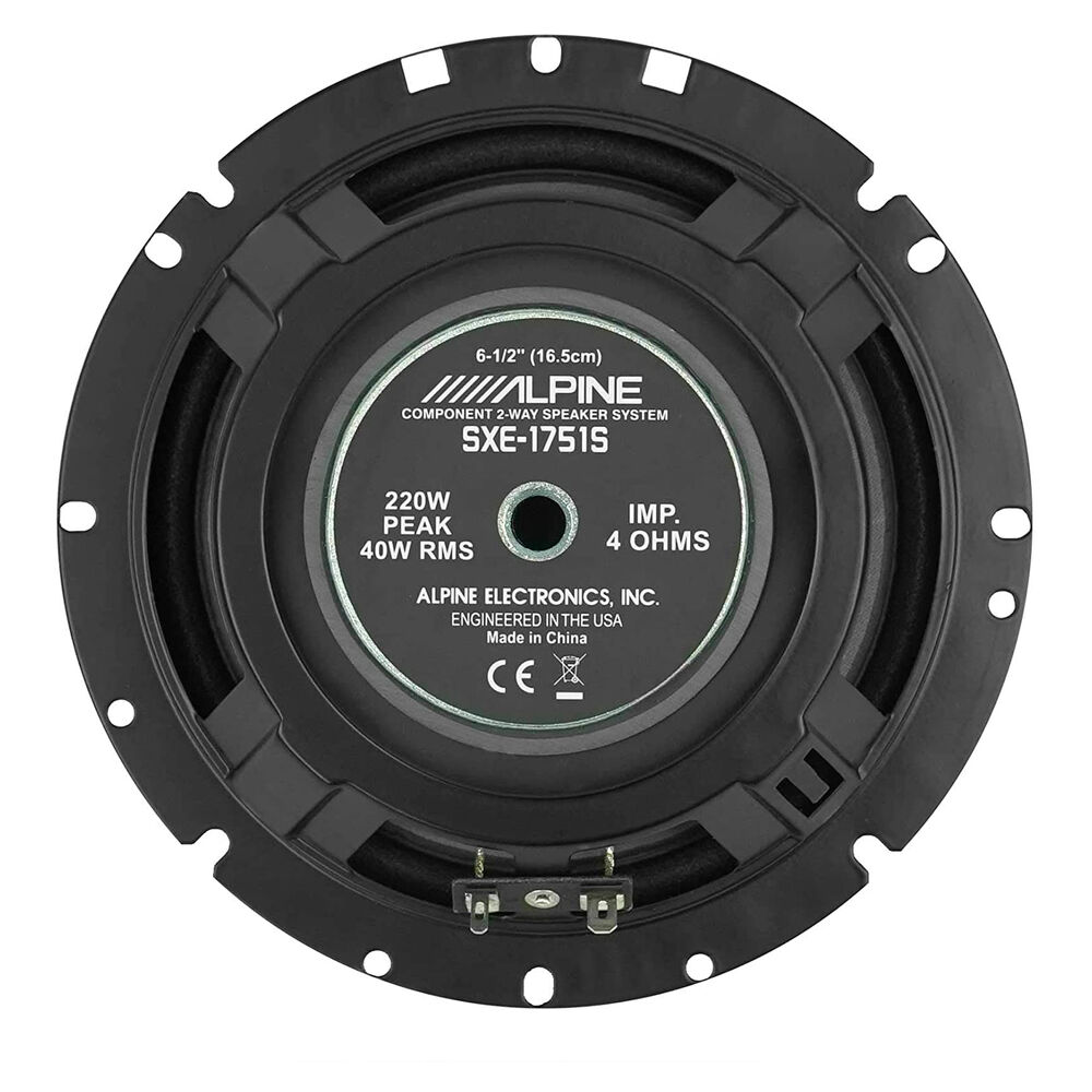 The Alpine SXE-1751S is a high-quality 6.75-inch two-way coaxial speaker system engineered to deliver clear, dynamic sound in your vehicle. With a power handling of 70 watts RMS (210 watts peak) and a frequency response of 40Hz – 20kHz, it provides deep bass, natural mids, and crisp highs for an immersive audio experience. Designed with durable construction for long-lasting performance, the SXE-1751S is ideal for upgrading your factory speakers or installing in custom audio setups. Its reliable design ensures consistent performance and superior sound quality in all driving conditions.