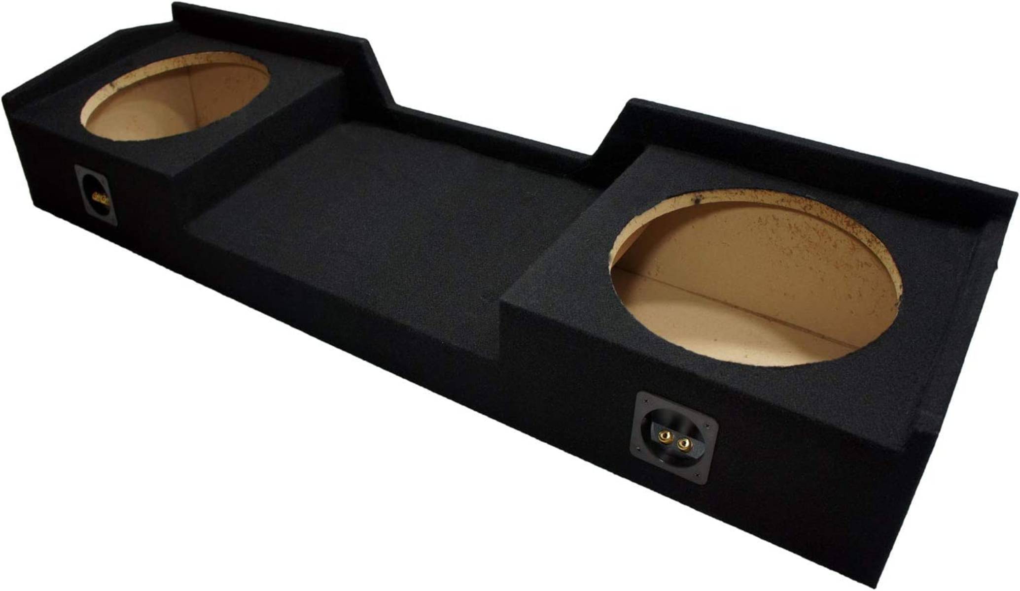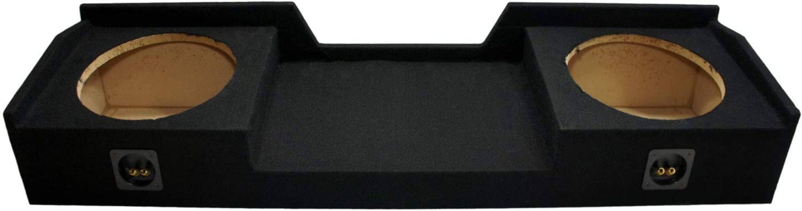 -Adding bass to a truck can be a very complicated problem to tackle, especially when building a box! We offer pre-built enclosures that are ready to be dropped into your 99-06 Chevy Silverado / GMC Sierra truck that offer unbeatable performance and sound quality that simply cannot be matched. This is a dual 12″ down firing model, why down firing? This style enclosure actually increase the SPL output of your subwoofers forcing the sound waves to travel up in down inside the cab before reaching the listener. The woofers are spaced off the floor so it’s not possible for them to hit the floor while playing. It also keeps the subs out of view for security concerns. Overall you cannot find a better fitting or sound box. image 2 Compatible with Chevy Silverado Ext Cab Truck 1999-2006 Dual 12” Subwoofer Enclosure Sub Box Image 3 ASC Logo You will not only see a difference in the quality of the boxes we build, but you will hear the difference and that is what is it is truly all about. Our boxes are made from precision cuts of MDF. They are then liquid nailed, nailed and completely sealed. We then wrap them with high quality carpet that matches most vehicle interiors. All Boxes feature high grade spring loaded terminal cup(s) for the absolute best connection possible. All the custom series enclosures are made to fit precisely into your Chevy Silverado 99-06 Extended Cab to the get the max performance from every extra inch of wasted space.