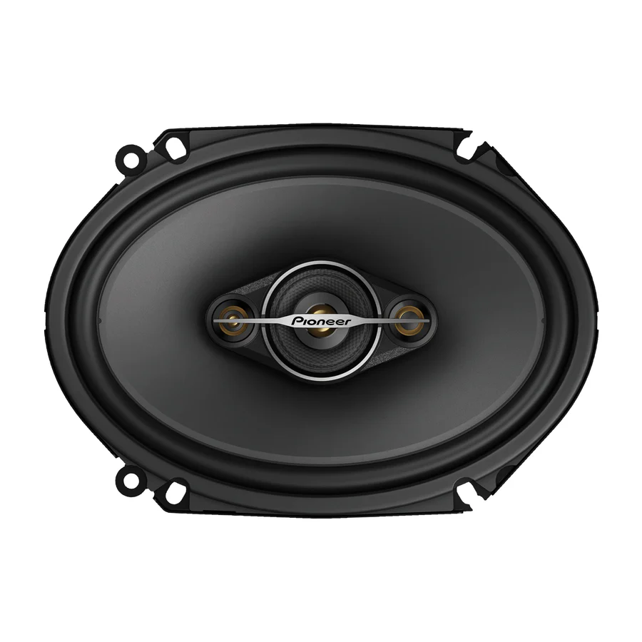 The Pioneer TS‑A6881F is a 6″ × 8″ 4‑way coaxial speaker pair from the A‑Series, designed as a high‑quality upgrade for vehicles with factory 6×8 speaker locations. It supports a maximum (peak) input of 350 W and has a nominal (RMS) power rating of 80 W. The speaker has a sensitivity of 90 dB (1W/1 m) and an impedance of 4 ohms. It features a carbon & mica‑reinforced IMPP™ (Injection Moulded Polypropylene) woofer cone for improved rigidity and clarity, and includes a 42 mm cellulose‑fibre midrange and dual 11 mm PET hard‑dome tweeters for broad frequency coverage. The frequency response is listed approximately as 30 Hz to 32 kHz.