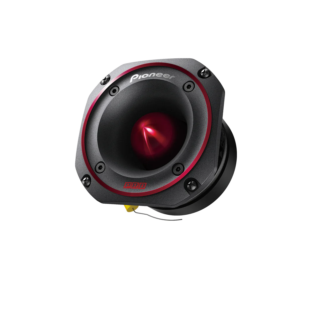 The TS‑B401PRO is a 4‑inch (≈ 103 mm) bullet‑style tweeter from Pioneer’s P.R.O. (Reference for Open Show) series, designed for high‑SPL installations and serious audio output. It features a titanium diaphragm and an aluminium die‑cast chassis engineered for durability and clarity under high power. With a nominal (continuous) power handling of 300 W RMS and a maximum (peak) input of 600 W, it delivers extreme output levels. The sensitivity is rated at 106 dB (1W/1m) and the impedance is 4 ohms, while the frequency response spans approximately 2,500 Hz to 22,000 Hz.