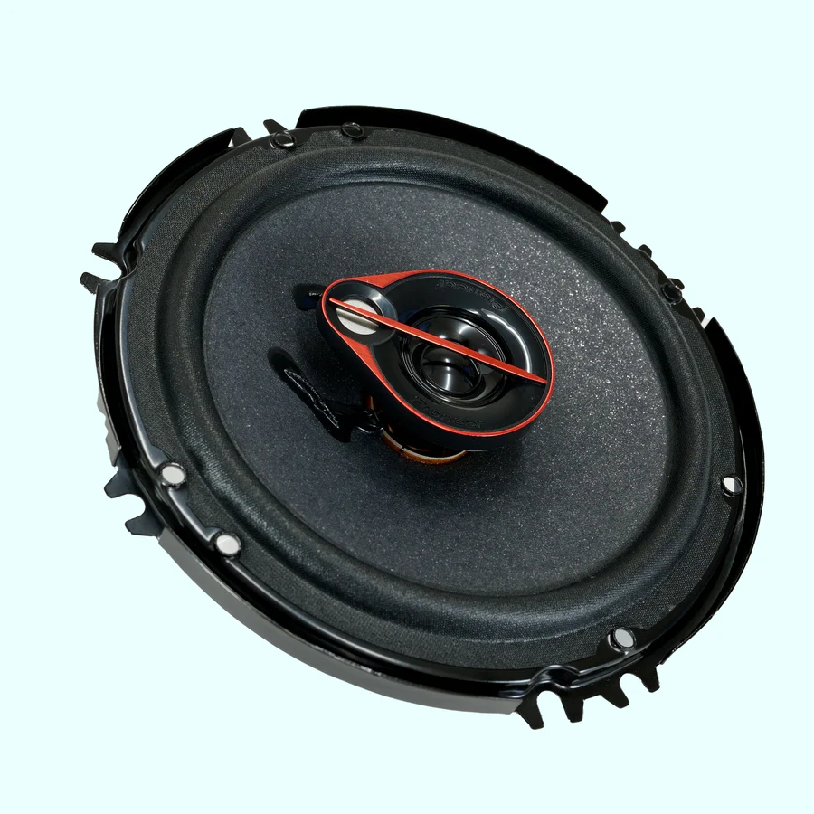 Unleash powerful performance with the Pioneer TS-R650 3-way speaker, delivering up to 300 W of max power and engineered for rich, detailed sound. Featuring a bold full mesh cover with a striking red flange, a Mica matrix cone, and a shallow basket design. The TS-R650 is built for style, strength, and seamless installation.